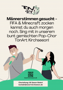 >> AKTUELL gibt es noch ein paar FREIE PLÄTZE in unserer Männer-Stimme << 🎸 Mach auch du den Dienstagabend zu deinem Gute-Laune-Highlight! 🎶 Unsere Männer-Stimme freut sich auf deine Unterstützung – meld dich gerne über kontakt@tonart-kirchseeon.de oder komm einfach vorbei: wir proben dienstags 20h im …